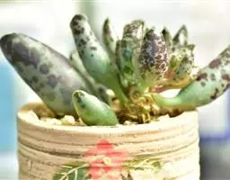 褐斑伽蓝是景天科伽蓝菜属的多年生多肉类植物,茎直立,多分枝,叶生于枝上,肉质叶片匙形,…
