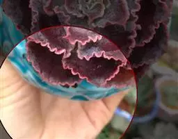 红缘莲花掌属蔷薇目、景天科植物,原产大西洋的加那利群岛。质厚,蓝绿色,被白霜,叶缘红褐色。聚伞花序,…