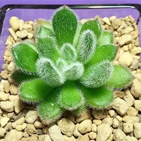 紫珍珠是景天科石莲花属的多年生肉质草本植物。植株中小型;叶片肉质,匙形,呈莲座状紧密排列;叶片粉紫色,…