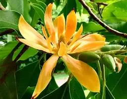 黄缅桂是木兰科、含笑属植物。常绿乔木,高达10余米;芽、嫩枝、嫩叶和叶柄均被淡黄色的平伏柔毛。…