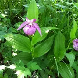 大花杓兰因其形状酷似一个口小肚大的囊袋,又名“大口袋兰”。花体呈紫红色,花朵直径5厘米至6厘米,…