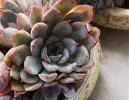 小红衣是景天科、拟石莲花属的一种多肉植物。叶片匙形,扁平细长,叶表具白粉,有明显的半透明边缘,…