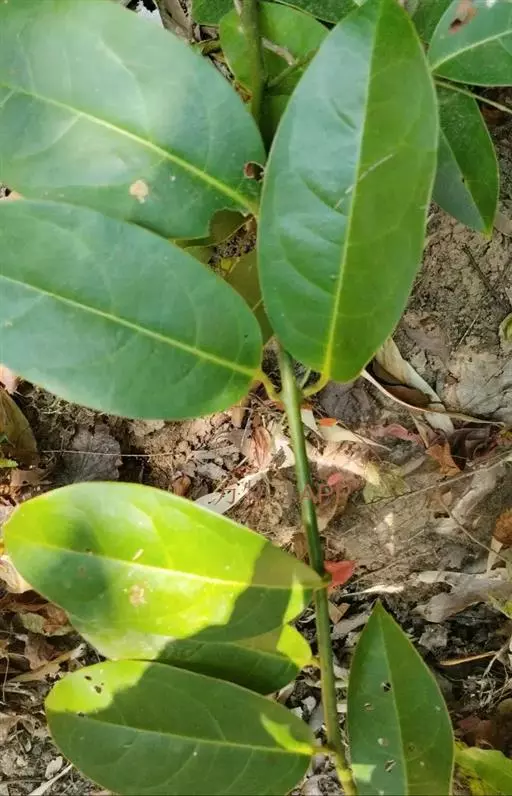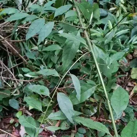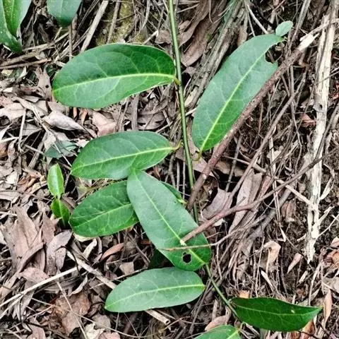 常绿攀援木质藤本;嫩枝绿色,老枝褐色,具白蜡层。叶革质,椭圆形、长圆状椭圆形或卵状椭圆形,长7—15厘米,宽4—6厘米,先端短渐尖或急尖,基部阔楔形或圆形,两面均无毛;侧脉每边6—7条,网脉稀疏,在叶面不明显,在叶背明显凸起;叶柄长1.5—2.5厘米。