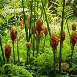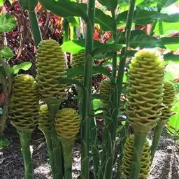 珊瑚姜是姜科、姜属植物。株高近1米。叶片长圆状披针形或披针形,长20-30厘米,宽4-6厘米,…