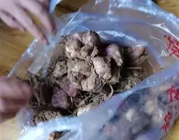 ⑵老姜采收,一般在10月中下旬至11月份进行。待姜的地上部植株开始枯黄,根茎充分膨大老熟时采收。这时采收的姜块产量高,辣味重,且耐贮藏运输,作为调味或加工干姜片品质好。但采收必须在霜冻前完成,防止受冻腐烂。采收应选晴天完成,齐地割断植株,再挖取姜块,尽量减少损伤。
