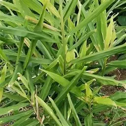 姜叶枯病属真菌性病害,主要为害叶片,病叶上初生黄褐色病斑,逐渐向整个叶片扩展,病部生出黑色小粒点,严重时全叶变褐枯死。
