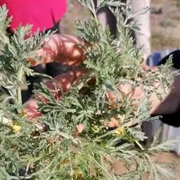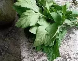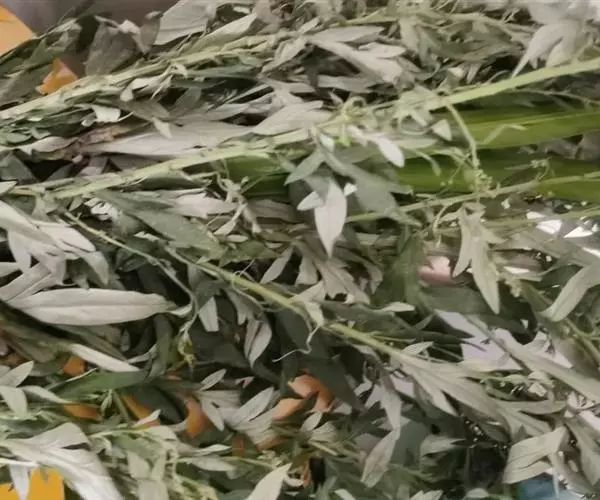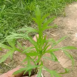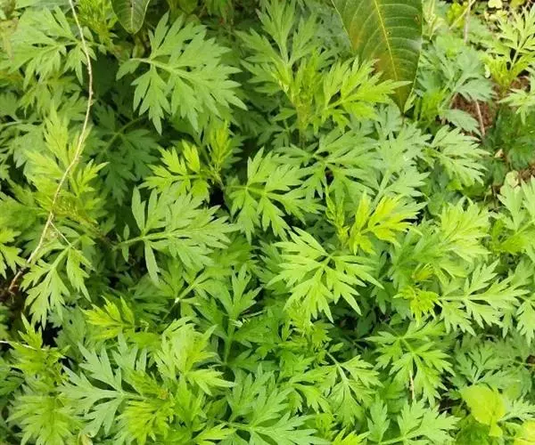 艾叶第1茬收获期为6月初,于晴天及时收割,割取地上带有叶片的茎枝,并进行茎叶分离,摊晒在太阳下晒干,或者低温烘干,打包存放。7月中上旬,选择晴好天气收获第2茬,下霜前后收取第3茬,并进行田间冬季管理。