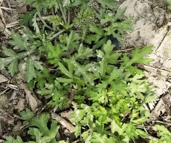 中耕与除草:开春后,当日平均气温达到9-10℃时,艾根芽刚刚萌发而未出地面时(及时拨开地表观察),保持一定的墒情,用喷雾机全覆盖喷一次艾专用除草剂封闭,切忌有空白遗漏。待艾苗长出后,若仍有杂草,则在3月下旬和4月上旬各中耕除草1次,要求中耕均匀,深度不得大于10厘米,艾根部杂草需人工拔除。第1茬收割后,对仍有杂草的地块,用小喷头喷雾器,对艾空隙间的杂草进行喷杀,防止喷溅到艾根部;第2茬艾芽萌发后,仍有少量杂草的,进行人工除草。除草剂应在技术人员的指导下使用,严禁不经技术指导,私自选用除草剂。紧邻地块其他农作物施用双子叶或菊科除草剂时,严禁喷溅到艾上。每茬收割后,地上仍有杂草,特别是带有草籽的杂草,应及时收集,并堆集在地头焚烧,严禁草籽落入田间。