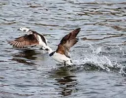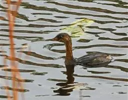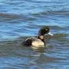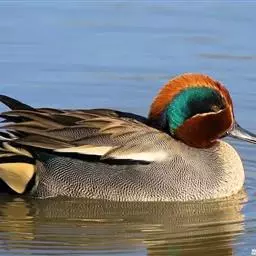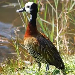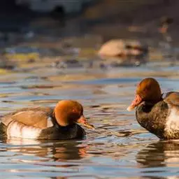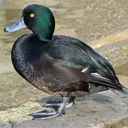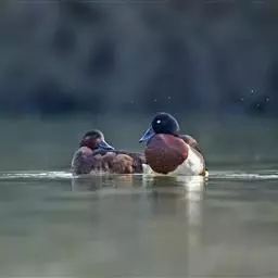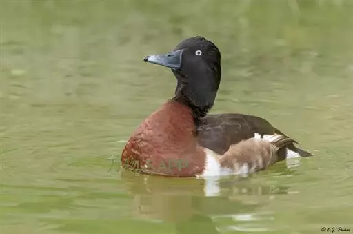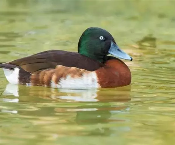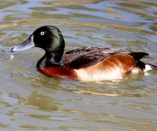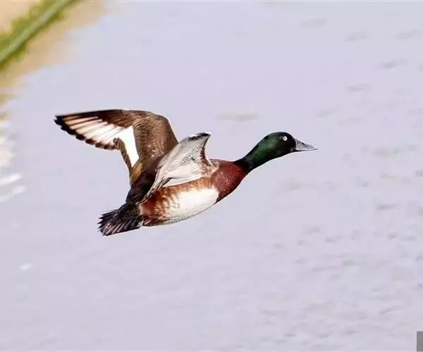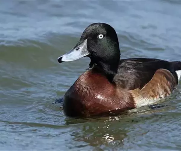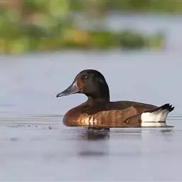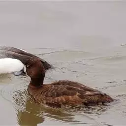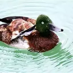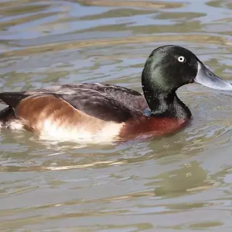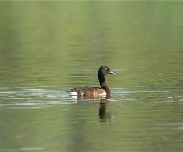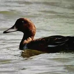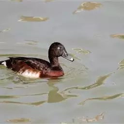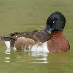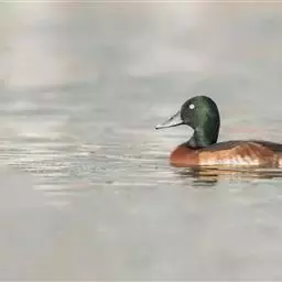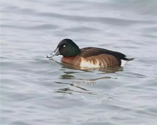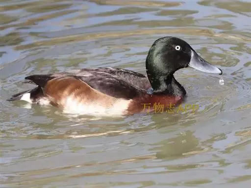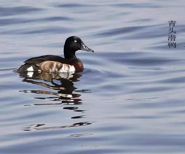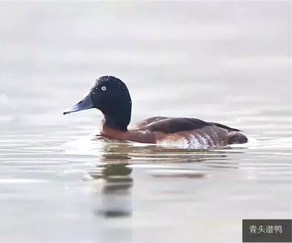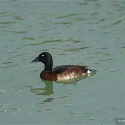 青头潜鸭(学名:Aythya baeri):是雁形目鸭科潜鸭属的鸟类。体圆,头大,雄鸟头和颈黑色,并具绿色光泽,眼白色。上体黑褐色,下背和两肩杂以褐色虫蠹状斑,腹部白色,与胸部栗色截然分开,并向上扩展到两胁前面,下腹杂有褐斑;两肋、淡栗褐色,具白色端斑。雌鸟体羽纯褐色。