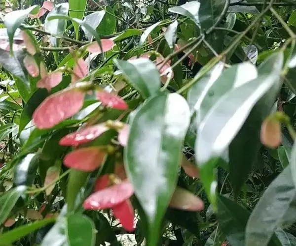 叶革质,披针形,长圆披针形或长圆倒披针形,长7-11厘米,宽2-3厘米,全缘,基部楔形或钝形,先端锐尖或短锐尖;上面深绿色,无毛,下面淡绿色,无毛或脉腋稀被丛毛;主脉在上面显著,在下面凸起,侧脉4-5对,在上面微现,在下面显著;叶柄长1-1.5厘米,细瘦,无毛。