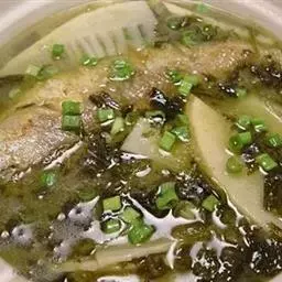雪菜黄鱼汤,浙江宁波市传统的特色名菜,属于宁波十大名菜之一,此菜汤汁奶白鲜洁,鱼肉鲜嫩,雪菜鲜脆爽…