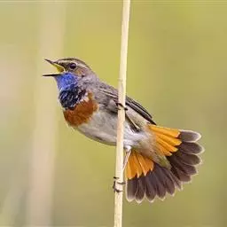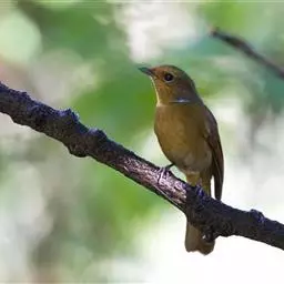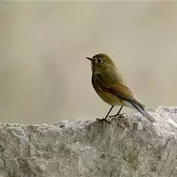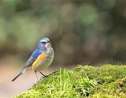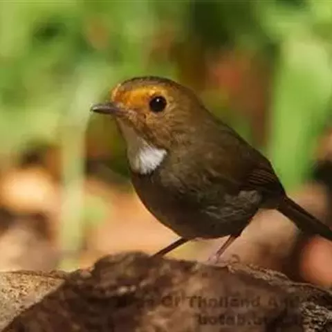 日本歌鸲:体型小似麻雀,但羽毛颜色较为美丽。嘴细长,嘴须不发达;翅短圆,上体草黄褐;雄鸟喉部橙棕色,…
