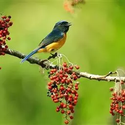 大仙鹟:体重34-38克,体长20-2厘米。是一种体型较大的深色鹟。雄鸟上体蓝色,…