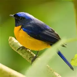 小仙鹟:体长11-13厘米,是一种深色鹟。雄鸟深蓝,脸侧及喉黑,臀白,前额、颈侧及腰为闪辉蓝色。…
