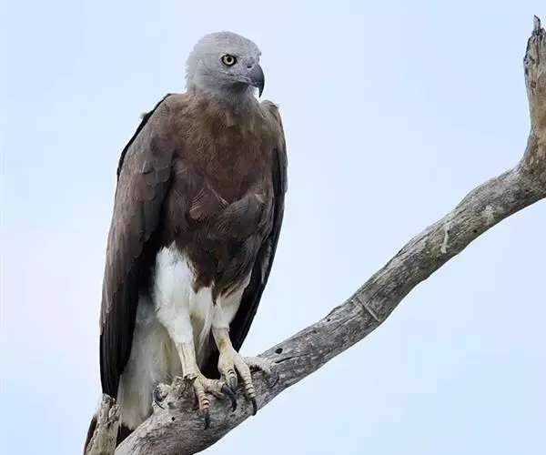 渔雕(学名:Ichthyophaga humilis):体长为61-69厘米。是体型较大的猛禽,但比海雕类要小一些。头部和颈部为灰色,腹部白色,其余均为灰褐色。虹膜为亮黄色,嘴为暗角褐色,基部铅蓝色,蜡膜褐色,脚和趾为淡黄色或淡灰白色,爪黑色。爪的底面上没有海雕类所具有的沟,但它的外趾能向后转动。尾羽为圆形,具有宽阔的黑色端斑,中央尾羽为灰褐色,外侧尾羽的基部的三分之二缀有白色和褐色的斑纹,末端三分之一为黑色。