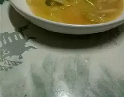 4、至银耳融化粘稠为好。将制好的冰糖银耳莲子羹盛入雕刻好的木瓜盅内,再放入蒸锅蒸半小时即可。