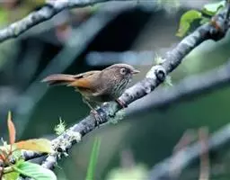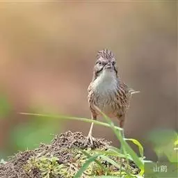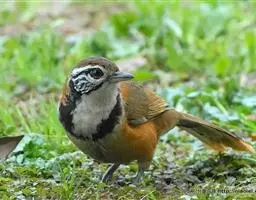 大噪鹛:中型鸟类,体长32-36厘米。额至头顶黑褐色,背栗褐色满杂以白色斑点,…