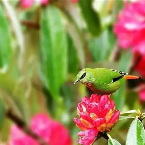 白腹凤鹛是绿鹃科、绿凤鹛属的小型鸟类,体长10-12厘米。上体从头到尾黄绿色,有短的羽冠,…