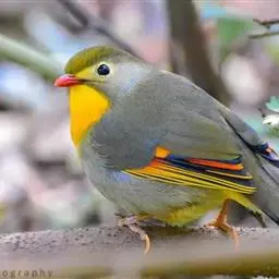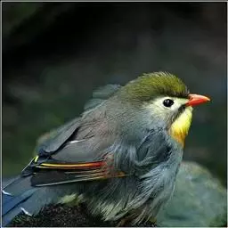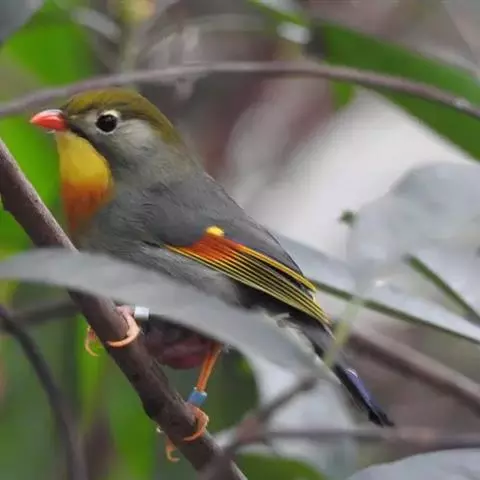 银耳相思鸟小型鸟类,体长14~18厘米。头顶黑色,耳羽银灰色,前额橙黄色;外侧飞羽橙黄色,基部朱红色,…