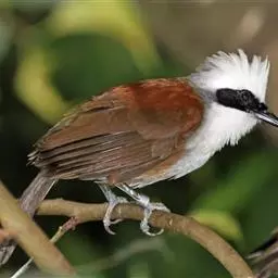 褐头凤鹛小型鸟类,体长12~13厘米。头顶有可竖立的红褐色羽冠,头侧、枕、颊、喉和下体白色,…