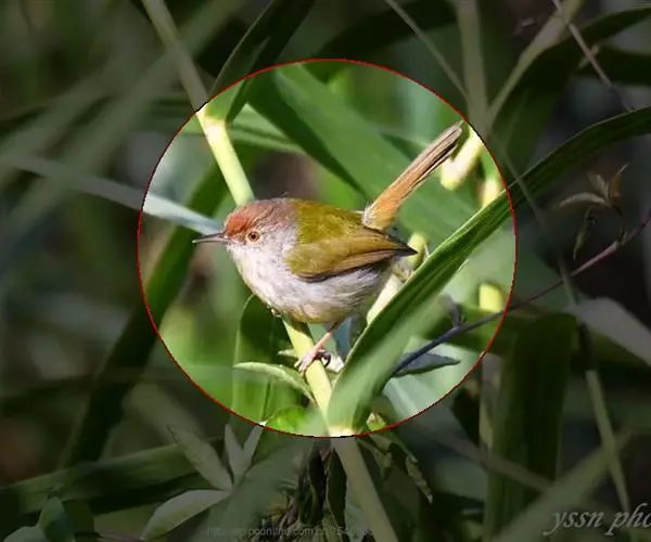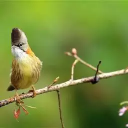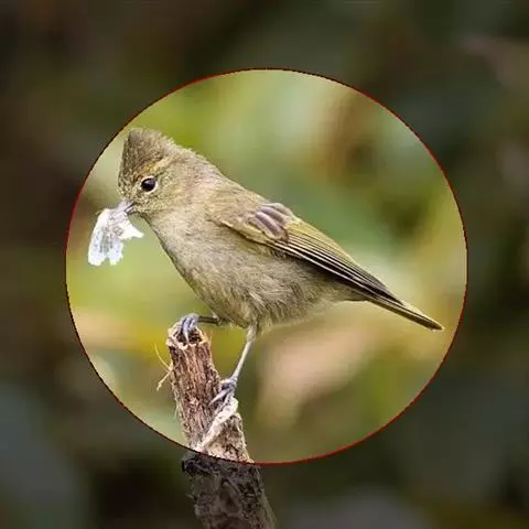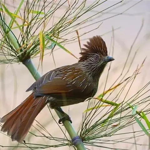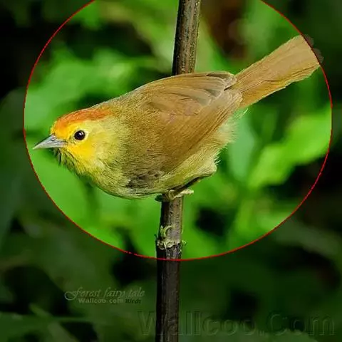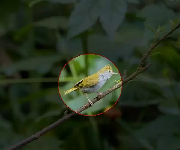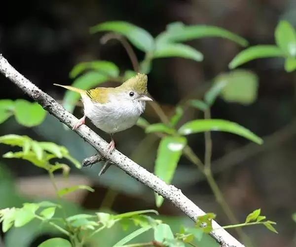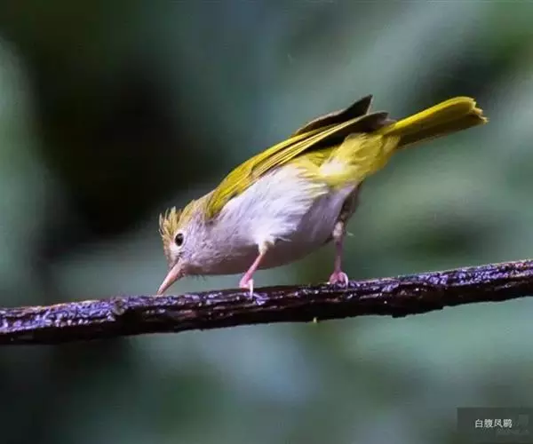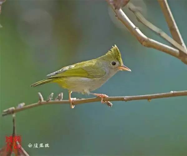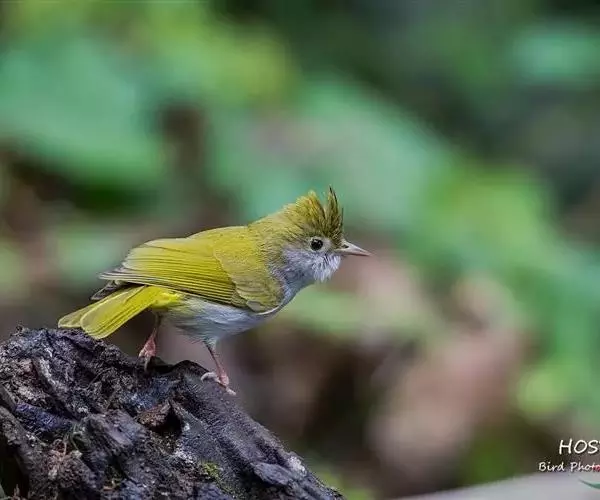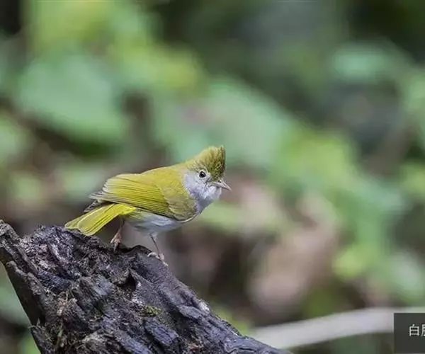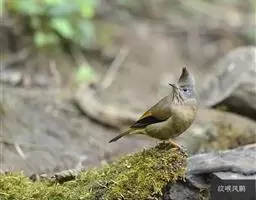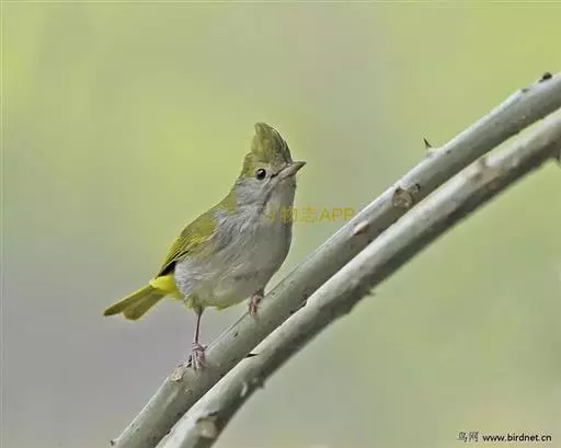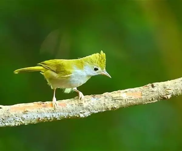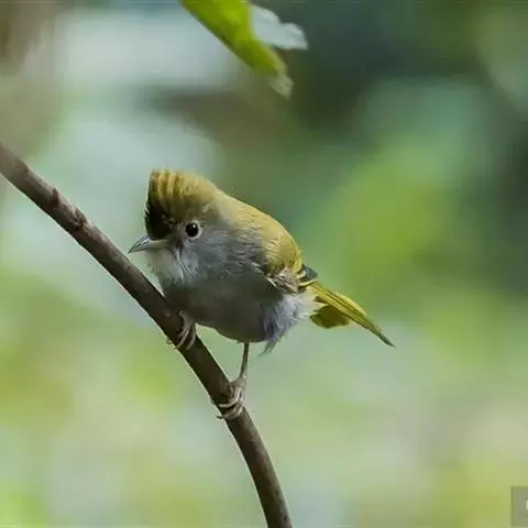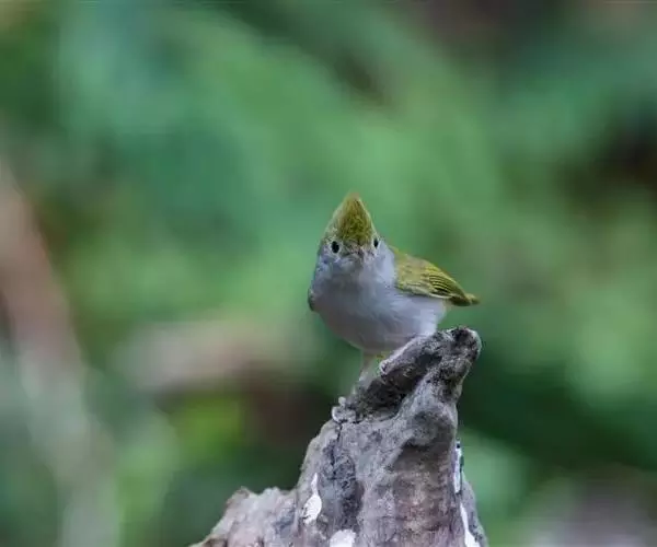 体小(13厘米)的橄榄绿色凤鹛。下体灰白,尾下覆羽黄色,冠羽凸显。与色彩相似的莺类的区别在具羽冠。