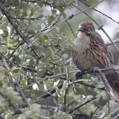 大草鹛中型鸟类,体长31~34厘米。上体灰色具粗著的黑褐色条纹,腰和尾上覆羽纵纹不明显。颊和耳羽灰色,…