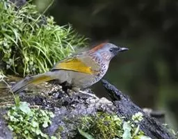 斑背噪鹛是噪眉科、噪鹛属中型鸟类,体长24-28厘米。额至头顶多为栗褐色,眼先、眼周和眼后纹均白色,…