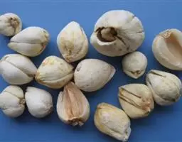 当天目贝母植株叶子枯萎、茎杆变黄,即可采收。采收过早种子不饱满,过迟茎杆倒伏易靏烂。采果时间应选在晴天露水干后进行:用枝剪剪断茎杆,理齐扎成小把,悬吊在室内通风干燥处晾干,不得烟火熏烤。在9月份,把蒴果搓碎,脱粒挑选出饱满的种子,并及时将种子用清水浸泡24小时,捞起后与湿砂拌匀(用砂比例为1:2-3),再用净棕片包扎好。在田间挖个深约15厘米左右的土窝,放下棕包,盖土3-5厘米。为保持土壤湿润,需经常观察,并视情况浇水保湿。每隔15天解开棕包搅拌1次,以便包内种子受到的温、湿度均勾。12月中旬开始就要经常观察种子是否萌动,当有8-10%的种子胚根突破种皮即可播种。注意种子的根芽不能超过种壳的长度,否则易断,不易成活。