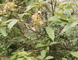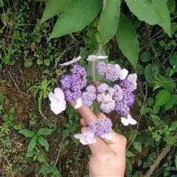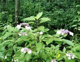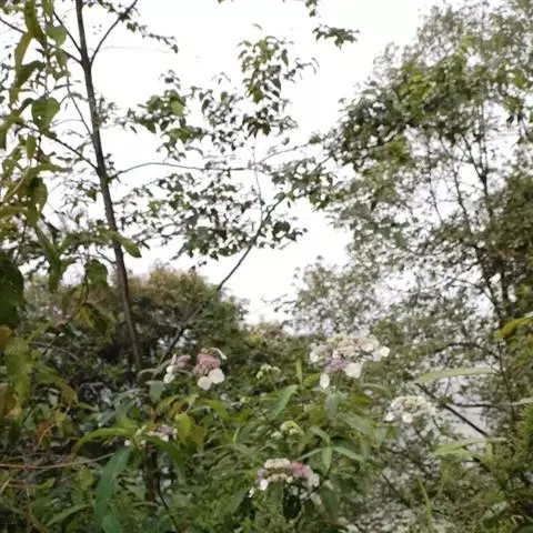 圆锥绣球,虎耳草科挂苦子组灌木或小乔木,枝暗红褐色或灰褐色,初时被疏柔毛,后变无毛,具凹条纹和圆形浅色皮孔。生长于山谷、山坡疏林下或山脊灌丛中。