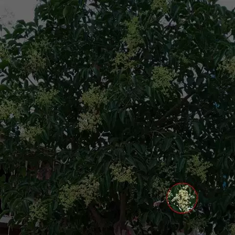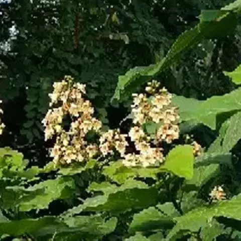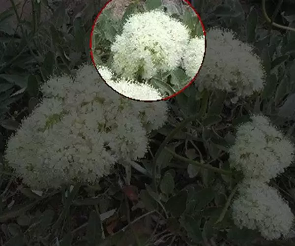 圆锥状聚伞花序尖塔形,长达26厘米,序轴及分枝密被短柔毛;不育花较多,白色;萼片4,阔椭圆形或近圆形,不等大,结果时长1-1.8厘米,宽0.8-1.4厘米,先端圆或微凹,全缘;孕性花萼筒陀螺状,长约1.1毫米,萼齿短三角形,长约1毫米,花瓣白色,卵形或卵状披针形,长2.5-3毫米,渐尖;雄蕊不等长,长的长达4.5毫米,短的略短于花瓣,花药近圆形,长约0.5毫米;子房半下位,花柱3,钻状,长约1毫米,直,基部连合,柱头小,头状。