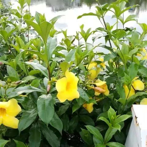 黄蝉属,夹竹桃科,约15种,分布于热带美洲,中国引入栽培的有黄蝉A. neriifolia Hoo…