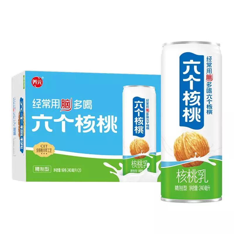 六个核桃是河北养元智汇饮品股份有限公司推出的一款核桃乳饮品,口感醇香,因富含对大脑有益的不饱和脂肪酸而深得消费者青睐,是植物蛋白饮料行业的领军品牌。六个核桃运用独创的【5·3·28】核桃乳生产工艺,有效地解决了核桃本身营养不易吸收、携带不便、口感涩腻的问题