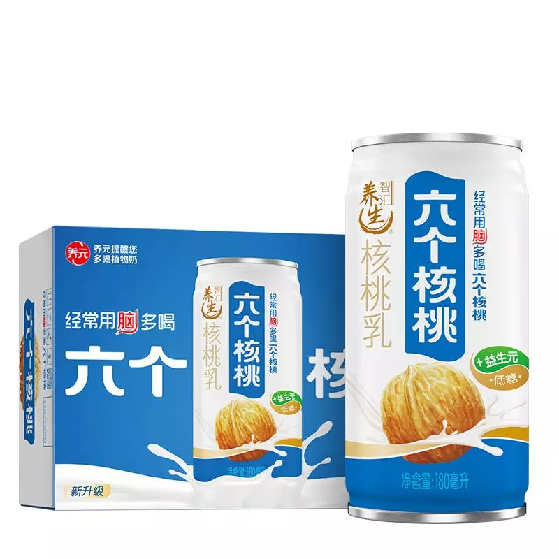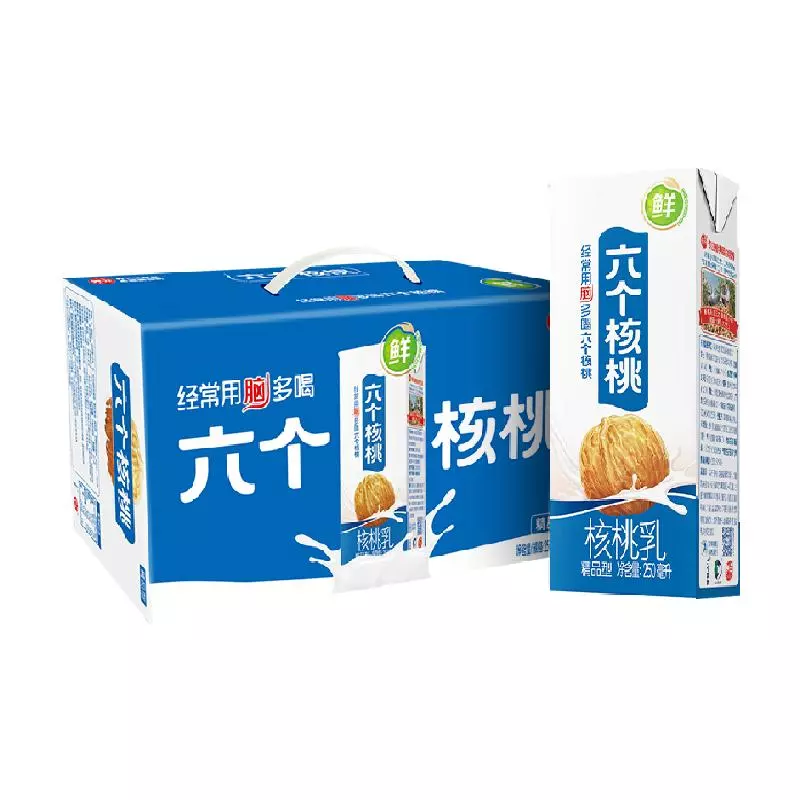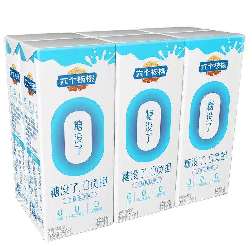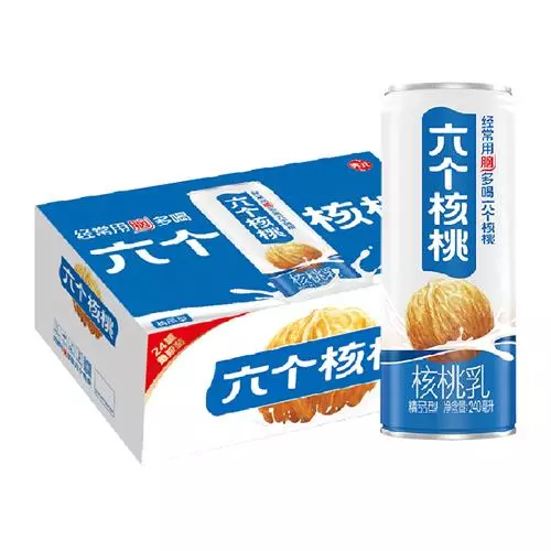 六个核桃是河北养元智汇饮品股份有限公司生产的一种核桃植物蛋白饮料,能够有效改善大脑疲乏状态,适合学生、白领等用脑人群饮用。六个核桃分为无糖型和低糖型,是植物蛋白饮料行业具有广泛影响力的品牌。