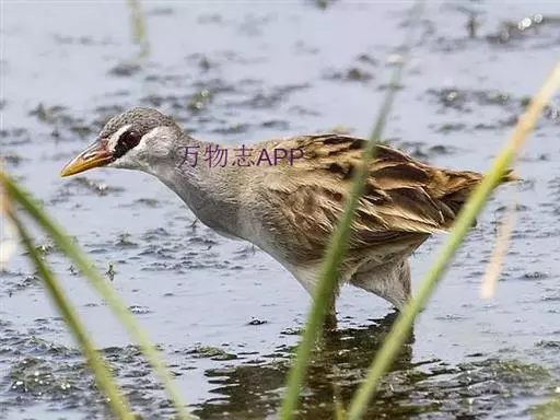 白眉田鸡(图2) 白眉田鸡成鸟两性相似。额灰色,头顶至后颈灰褐色;背橄榄褐色,具黑色斑点;腰至尾上覆羽亦为橄榄褐色但无黑色斑点。面及胸灰色,有白色眉纹及橄榄褐色穿眼纹,在穿眼纹下方也有一白色斑纹,形成的面部花纹较为醒目。颏、喉白色,腹中央亦白色,腹以下皮黄色,两胁黄褐色。幼鸟白色眉纹不明显,头是褐色而不是灰色,颈、胸和两胁是皮黄至淡褐色而不是灰色。