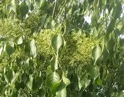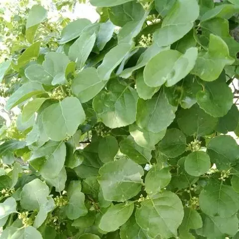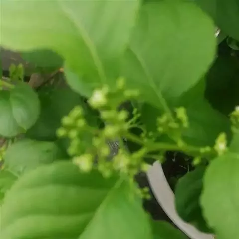 聚伞花伞腋生或侧生,通常有3花,总花梗长3~6毫米,花梗长约3毫米,关节位于花梗顶端;花单性异株,黄绿色,萼卵状三角形,先端钝圆,花瓣长椭圆形至倒披针形,先端钝圆,边缘啮蚀状;花盘肉质杯状,边缘不裂; 雄花:花丝丝状,具乳突,长3、4毫米,着生于花盘边缘,花药卵圆形,不育雌蕊长约2 毫米,雌花:不育雄蕊长约1.5毫米,子房近 球形,花柱柱状,柱头盘状,先端常3浅裂。