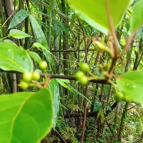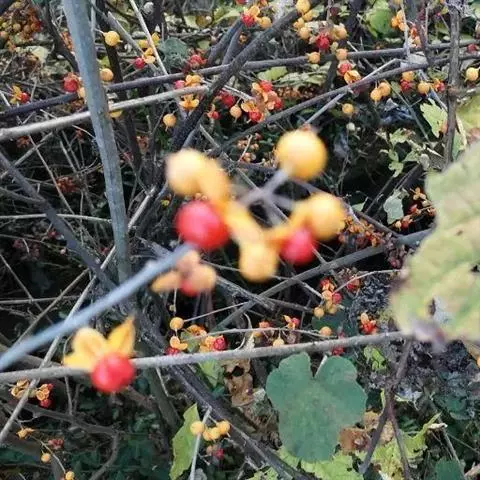 过山枫,常绿藤本。幼枝褐色,或红棕色,有时被柔毛,小枝无毛,皮孔圆形,稀疏或密布,髓实心,白色;冬芽圆锥形,长2.5毫米,最外两枚芽鳞片特化成三角形刺。种子新月形至 半环形,一端圆钝,另一端略尖,长约4.5毫 米,深褐色,具稠密的扰点,具橙红色假种皮,花期3、4月,果期9 -10月。