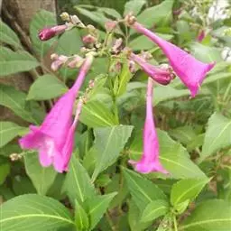 草本或小灌木,高30-50厘米,可达1.5米。茎下部常木质化,基部常匍匐生根,稀直立,仅嫩枝4棱,被硬毛,侧枝上的叶常较小,顶端渐尖或急尖,基部渐狭或稍下延,边缘具细锯齿或牙齿,两面被疏刺毛,上面钟乳体多为细而平行的线条,主脉下陷,侧脉每边5条,紫色,下面脉凸起,具顶端钩状囊状体,粗糙或稍粗糙,毛较密;叶柄长4-10厘米。