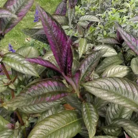 红背耳叶马蓝 J. R. I. Wood)是爵床科、马蓝属植物,多年生草本或直立灌木,多分枝,茎4棱,…