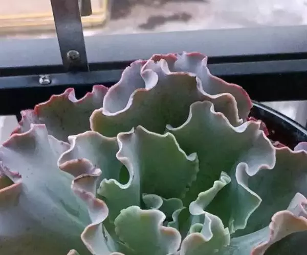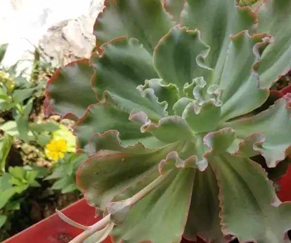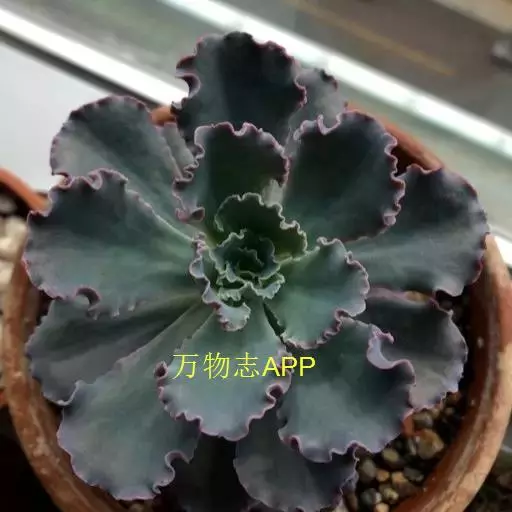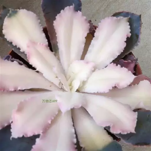 叶色翠绿至红褐,新叶色浅、老叶色深,强光与昼夜温差大或冬季低温期叶色深红,弱光则叶色浅绿,叶缘呈大波浪状,常会显现紫红色。新叶有薄霜粉覆盖。 偶有侧芽。聚伞花序,长50~100厘米,花通常呈粉色。 [1-2]
