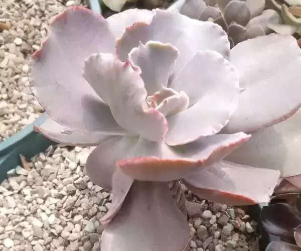 女王花笠(Echeveria ‘Meridian’) ,又名扇贝石莲花、女王花舞笠,是景天科拟石莲花属的多肉植物(多浆植物)。由美国加利福尼亚州的育种师Dick Wright于1964年培育。特征是呈大波浪状褶皱的红色叶缘和气质高贵的粉紫色调。拉丁名意为“子午线”。 亲本之一为E. crenulata。