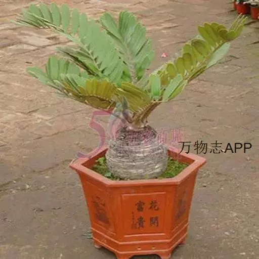 多年生常绿灌木植物。茎呈球状,有时分枝;叶长80~120厘米,革质,坚硬,羽状裂,小叶4~26枚,叶被有黄褐色绒毛;雄球花长约10厘米;雌球花较短,与苏铁相似。栽培较容易,生长健壮。越冬最低温度10℃;要求充足的阳光。春、夏、秋三季移至室外阳光下栽培。生长期要求充足的水分;忌积水。