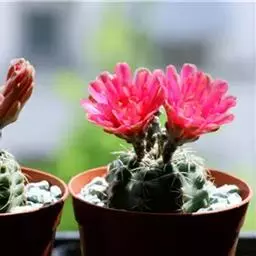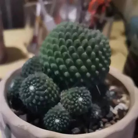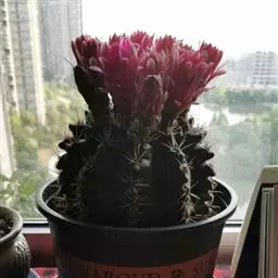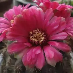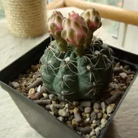 绯花玉 Speg.)是仙人掌科、裸萼球属多肉植物,植株呈扁球形,表皮墨绿色,刺针状,…