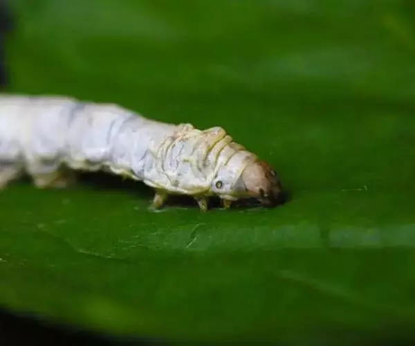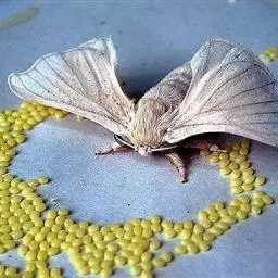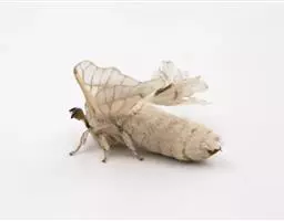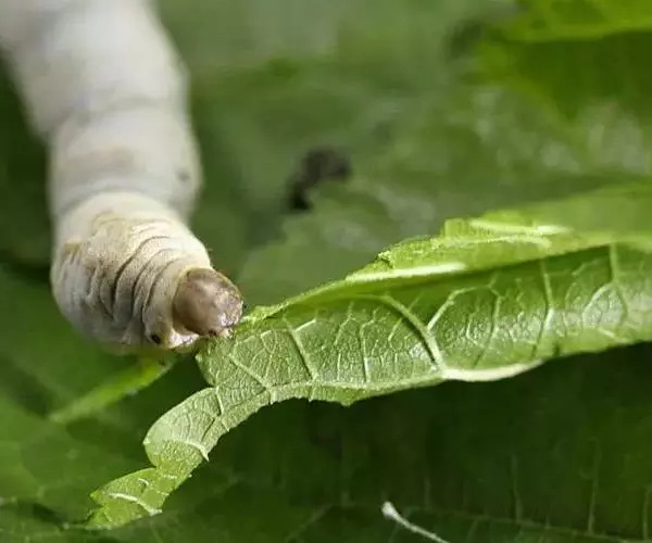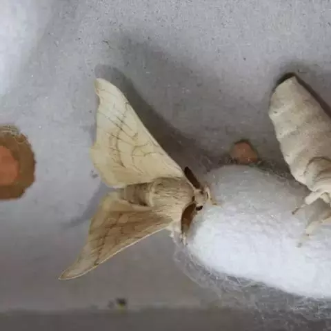 蚕蛾幼虫,吃桑叶,在化蛹前吐出作茧用的大量蚕丝是重要的纺织原料。桑蚕是完全变态昆虫,一生经过卵、幼虫、蛹、成虫等四个形态上和生理机能上完全不同的发育阶段。卵是胚胎发生、发育形成幼虫的阶段,幼虫是摄取食物营养的生长阶段,蛹是从幼虫向成虫过渡的变态阶段,成虫是交配产卵繁殖后代的生殖阶段。整个世代只幼虫期摄食,并为蛹和成虫期的生命活动积贮营养。