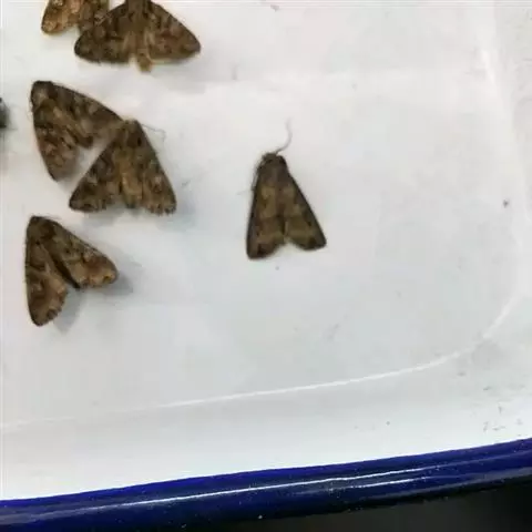 雌蛹腹部肥大,在第8腹节腹面的正中线上,有一条纵线,雄蛹在第8、9腹节腹面正中线的交界处,有一小点。