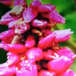 花序头状,直径6-10毫米,单生或成对,顶生;花序梗具腺毛;苞片长卵形,膜质;花梗极短;花被5深裂,淡红色,花被片椭圆形,长2-3毫米;雄蕊8,比花被短;花柱3,中下部合生,与花被近等长;柱头头状。