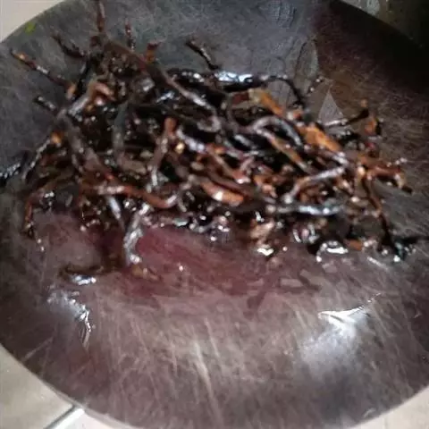 1、肉用酱油生粉少许糖腌制一下,油热后炒熟捞出;
