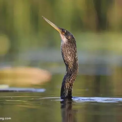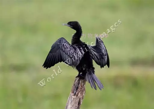 黑颈鸬鹚(学名:Phalacrocorax niger),中型水鸟,体长50~51厘米。繁殖期通体黑色,缀有深蓝色和蓝绿色光泽;肩、内侧次级飞羽及翅覆羽暗银灰色,羽缘黑色;头顶、头的两边和颈缀有少许白色丝状羽;枕部和后颈有轻微的短的羽冠。主要以鱼为食。繁殖于各种适合于营巢而又富有食物的湖泊、池塘和沼泽地上,也营巢于比较小的水塘。常成5~6对的小群在一起营巢,偶尔也见有多至50~60对的大群在一起营巢于水边树上或比较高的草丛中。