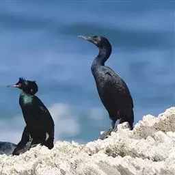 海鸬鹚:俗名乌鹈。典型的海上鸬鹚。体长约70厘米,体羽黑色具光泽。脸红色,与红脸鸬鹚甚似,但繁殖期…