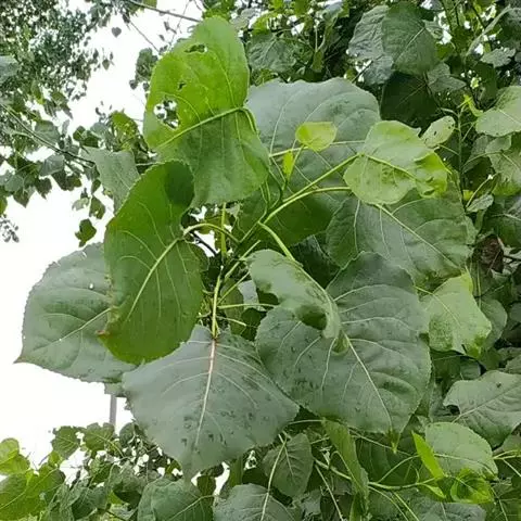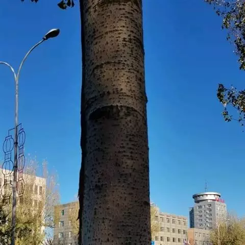 毛白杨 树冠浓密,树皮灰绿色,光滑,皮孔菱形,小,多为2个以上横向连生,呈线形;短枝叶基部通常为截形,发叶较早,生长较原变种快。