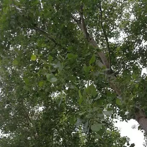 黑杨,为乔木,高30米;树冠阔椭圆形。树皮暗灰色,老时沟裂。小枝圆形,淡黄色,无毛。芽长卵形,富粘质,…